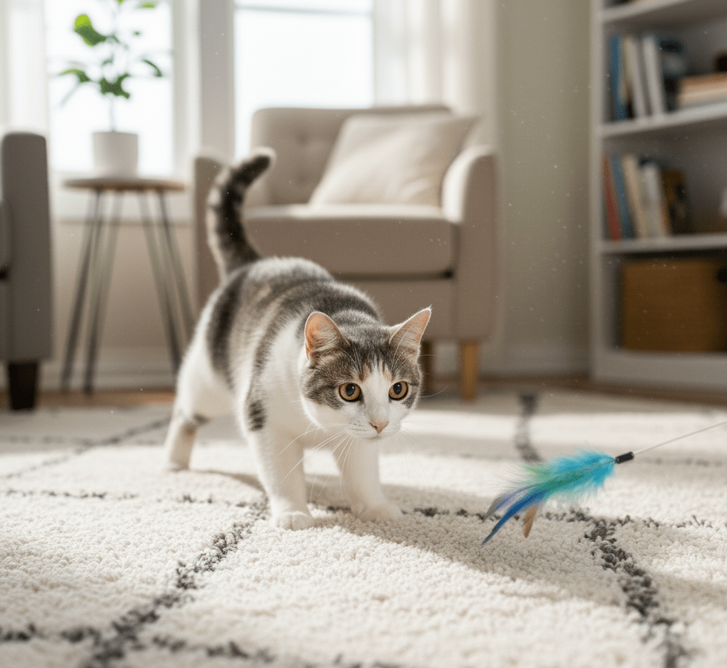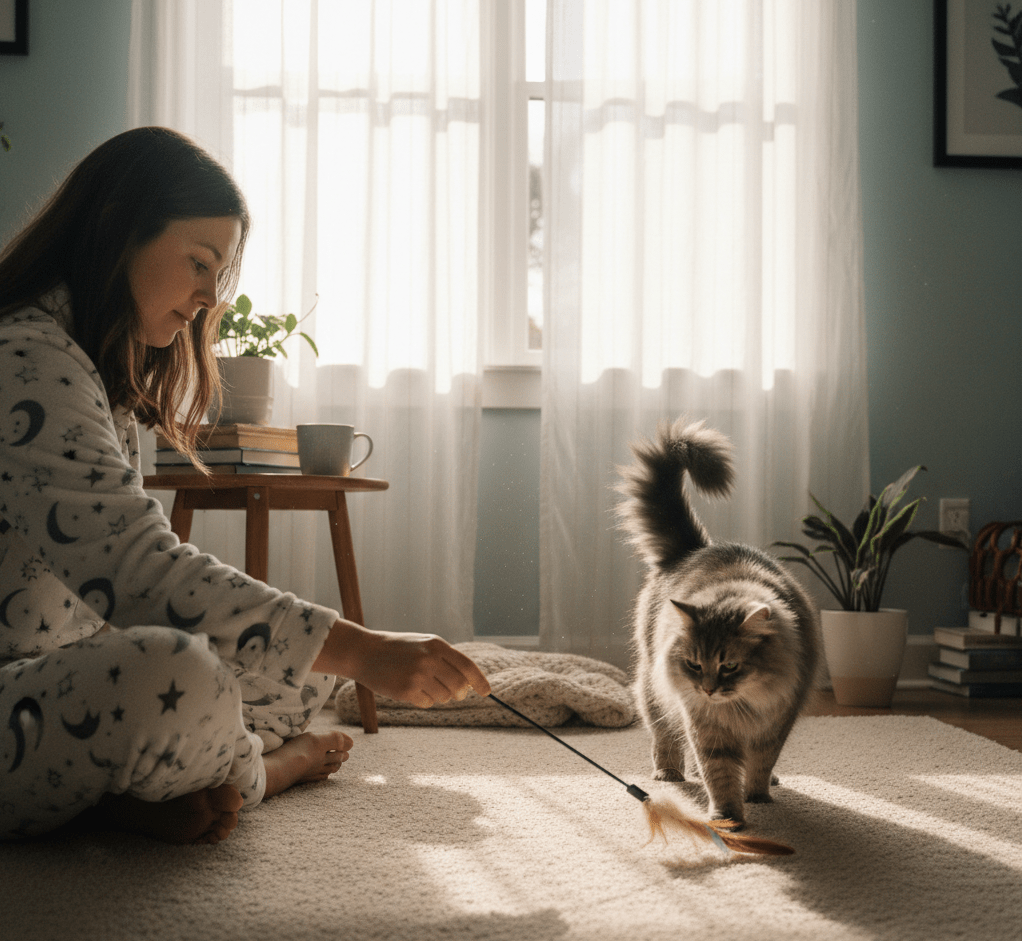 Try starting with just 5–10 minutes twice a day using interactive toys. Over time, you may notice your cat anticipating play, greeting you with enthusiasm, or showing calmer behavior between sessions.