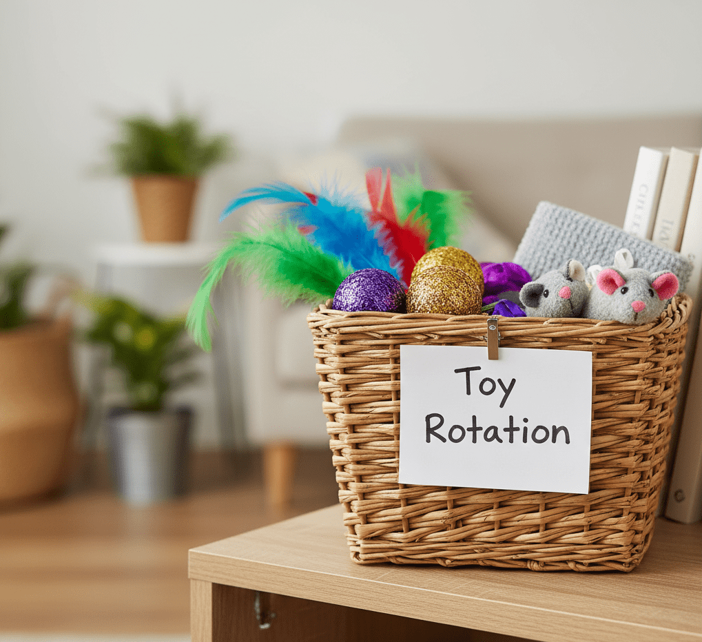 Cats can become bored if the same toy appears every day. Try rotating toys weekly so each item feels new and exciting. Store toys out of sight, then bring out a “new” option for each session.