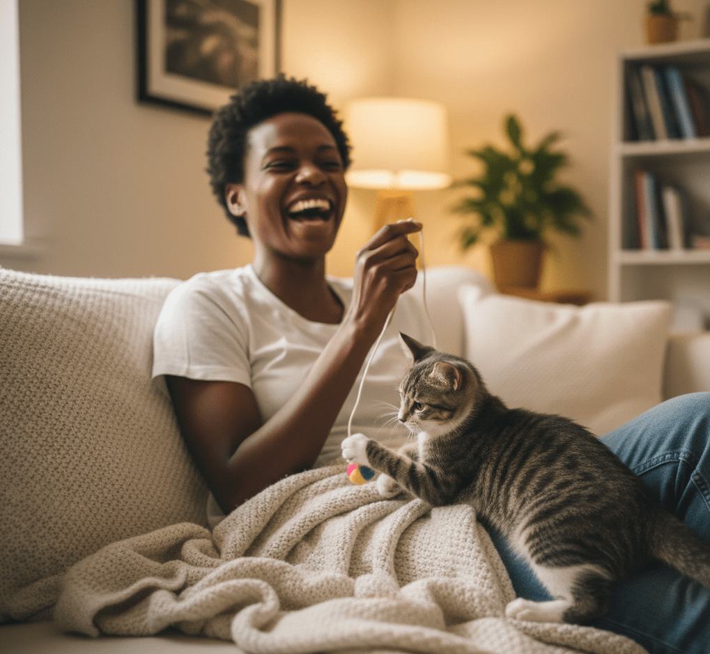 Cats aren’t the only ones who benefit from structured play. Research shows that interacting with pets can lower heart rate, soothe nervous systems, and create small moments of joy throughout the day.